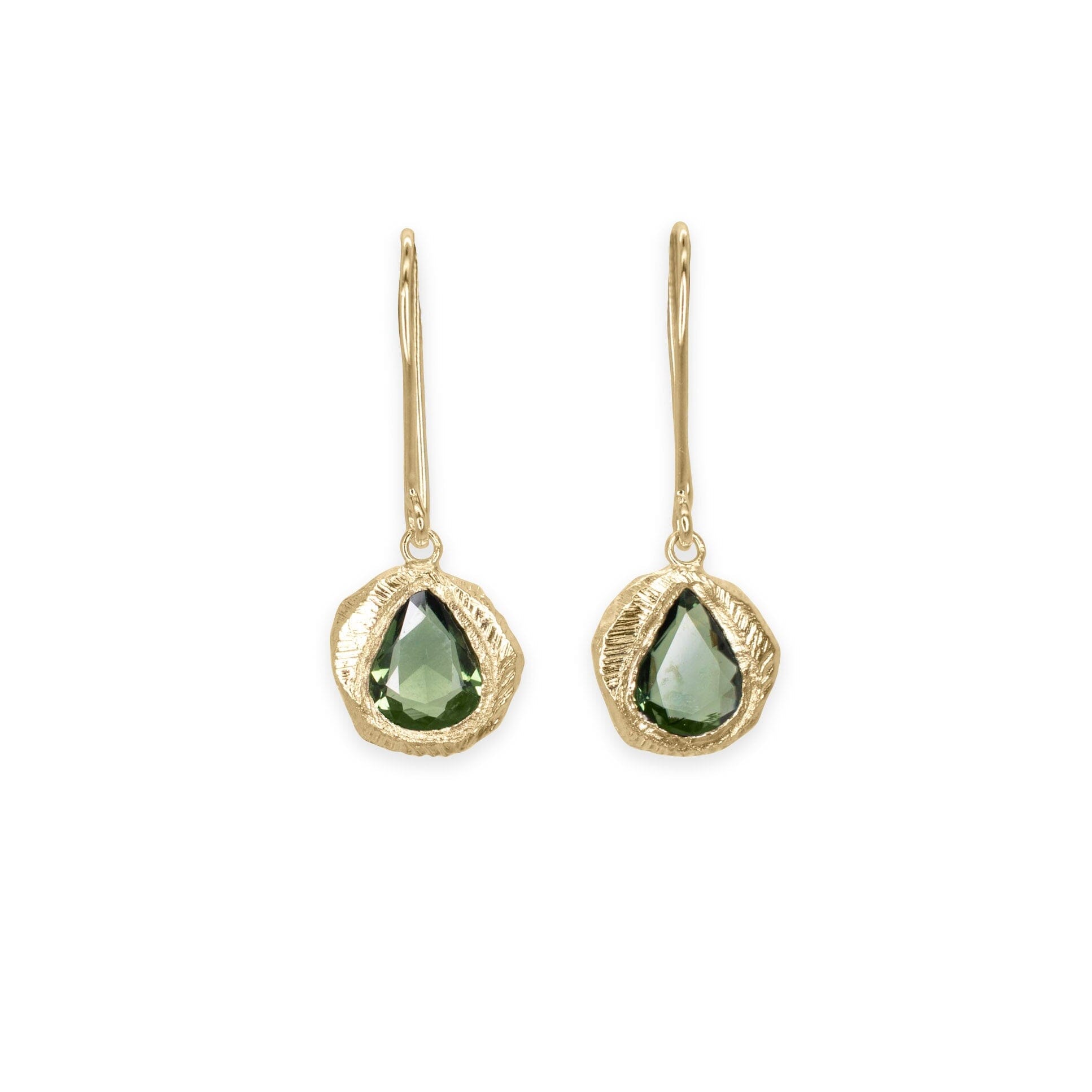 18K Gold Freeform Drop Earring in Dark Green Sapphire