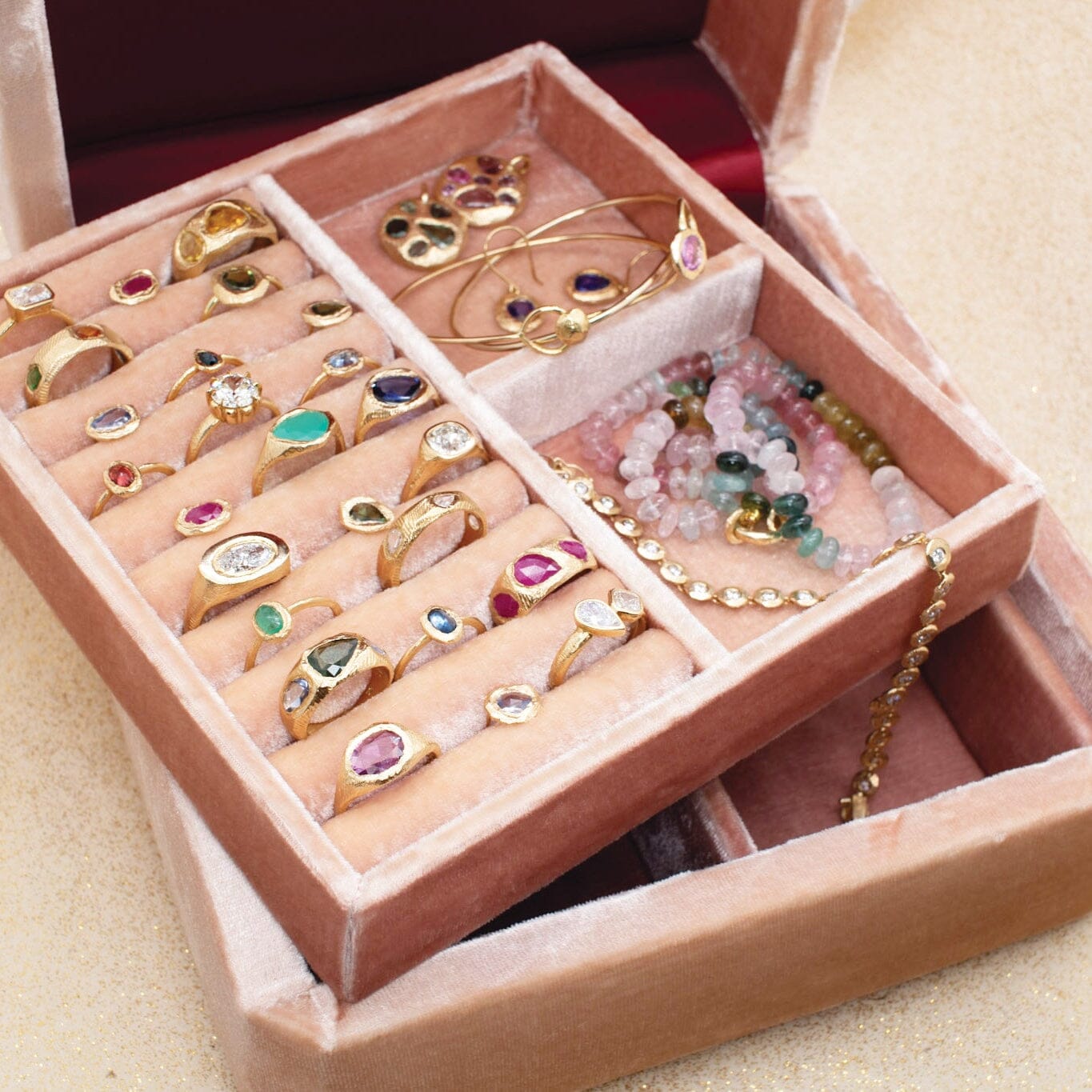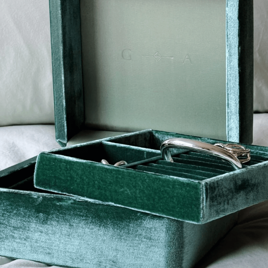 Crafted with luxurious Italian velvet, this jewelry box is designed to gently protect your jewelry and cherished keepsakes while adding a refined touch to your space.