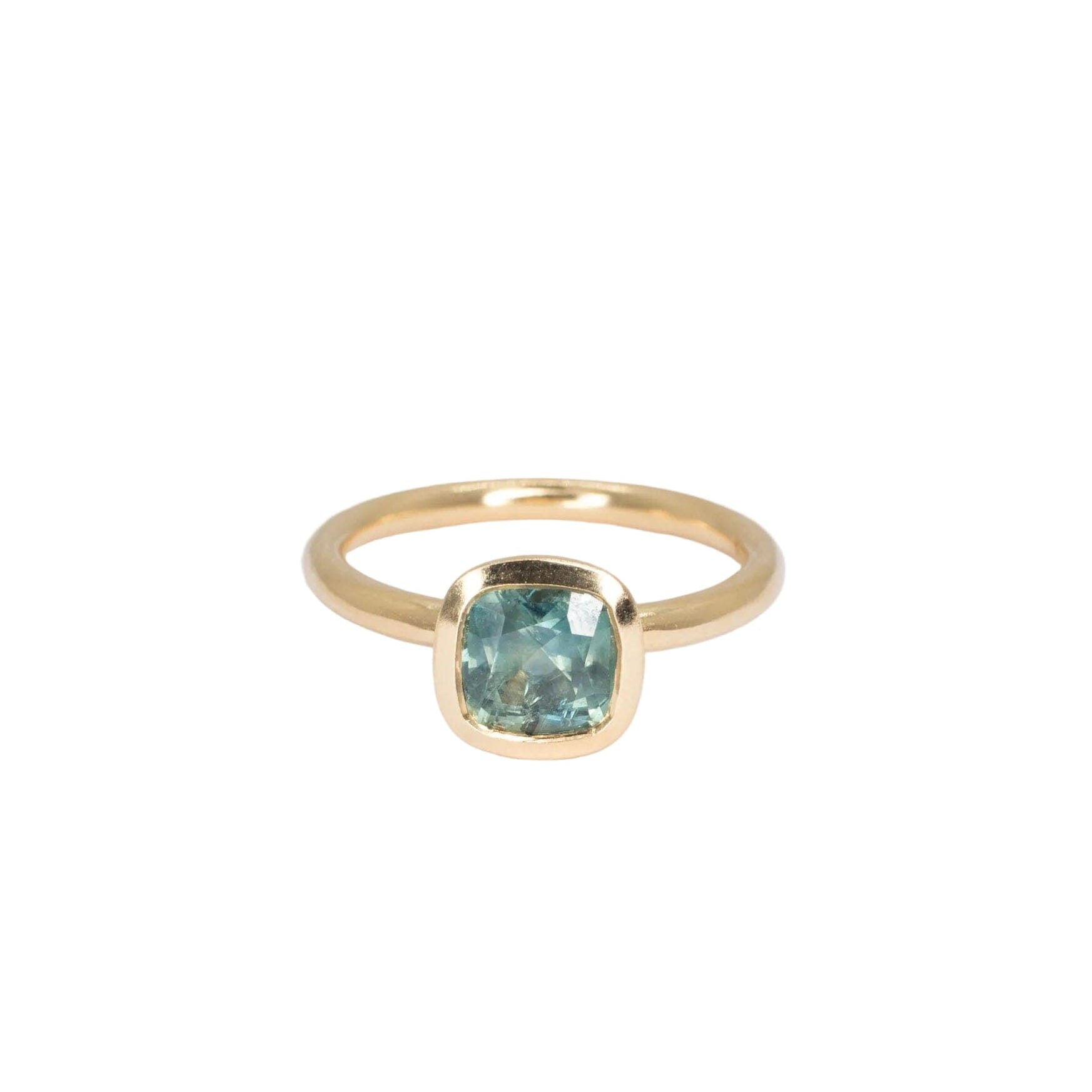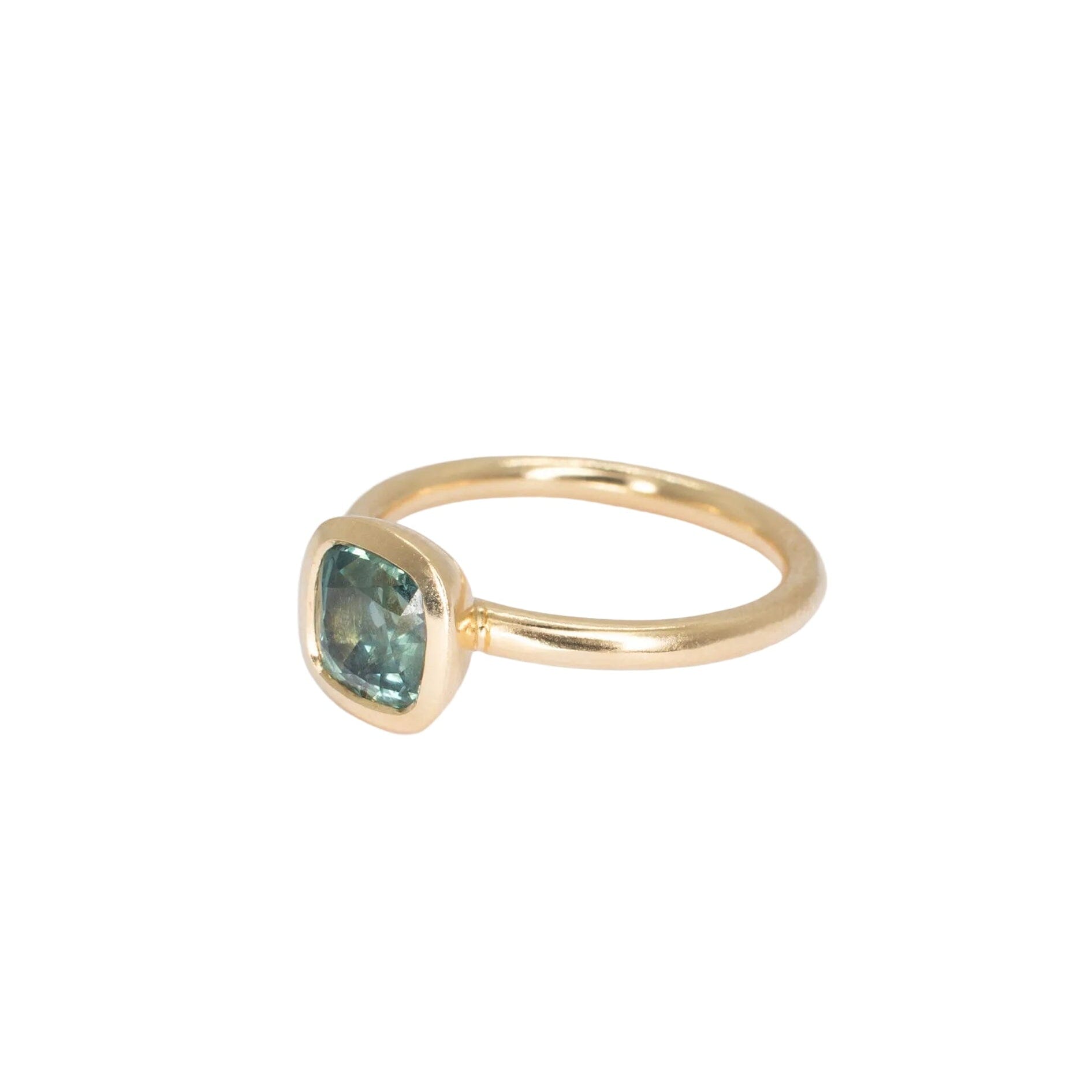 18K Gold Madison Ring with Blue-Green 1.58 carat Montana Sapphire
