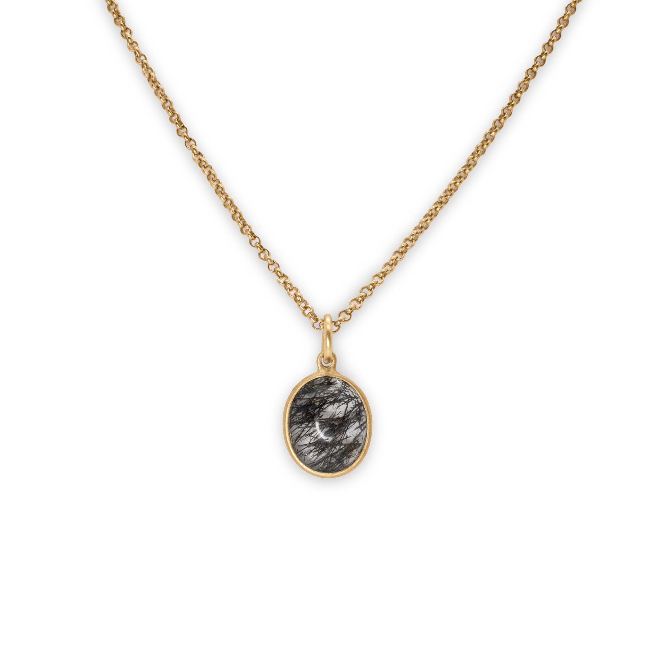 10K Oval Stone Charm Pendant in Tourmalated Quartz