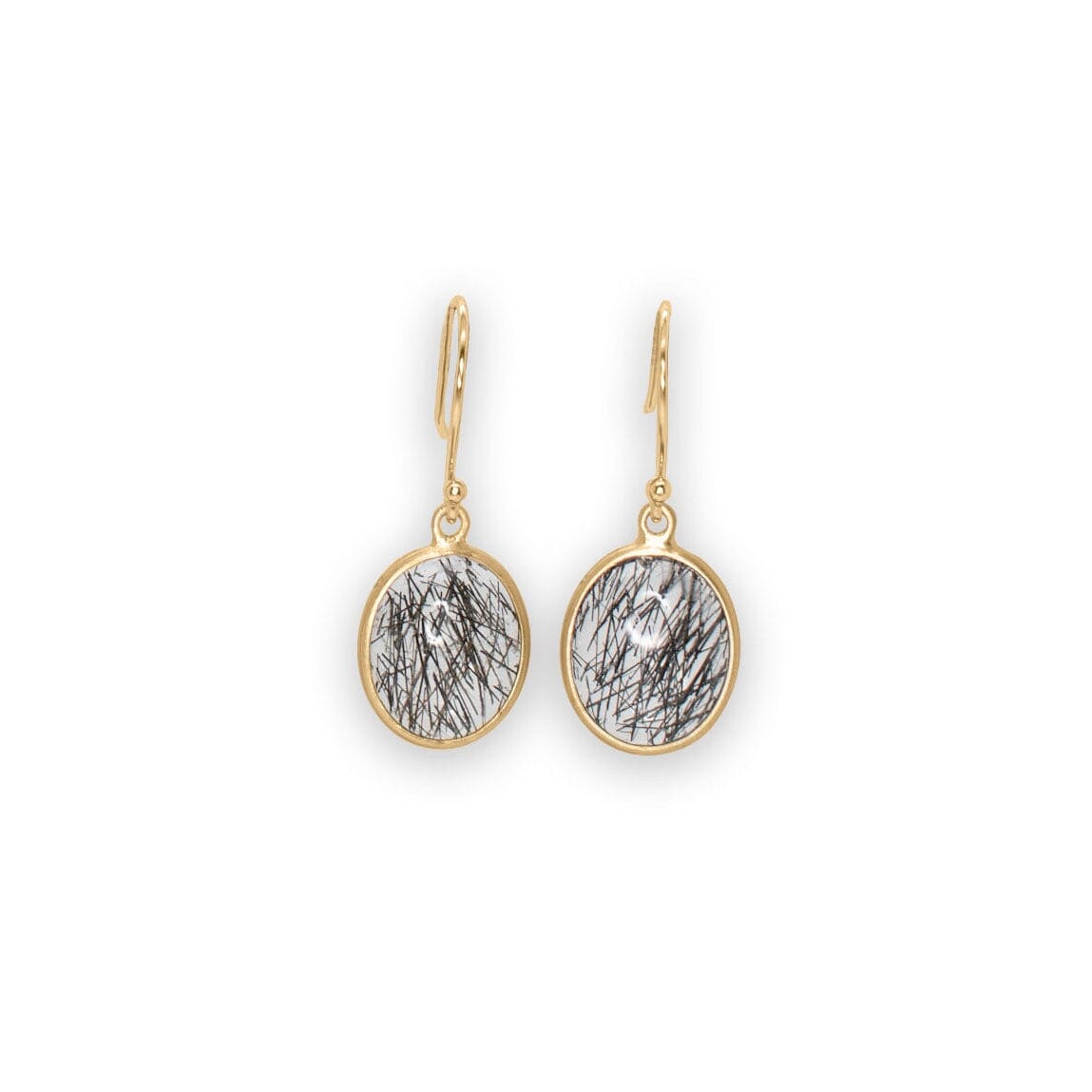 10K Oval Stone Drop Earrings in Tourmalated Quartz