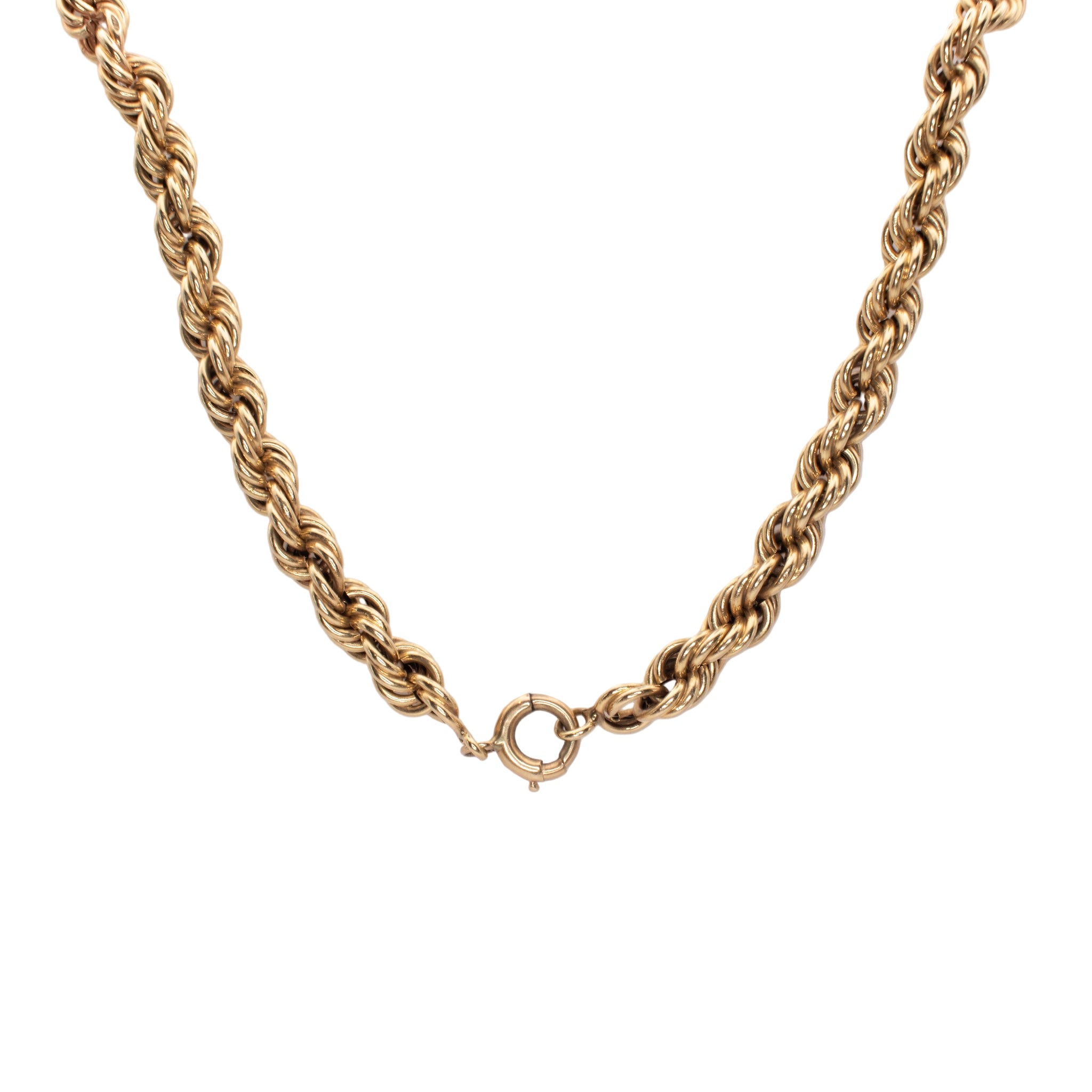 A timeless classic, this 14K yellow gold graduated rope chain features beautifully twisted links that shimmer with every movement. The graduated design adds subtle dimension and sophistication, making it a perfect foundation for your favorite pendants or stunning worn on its own.