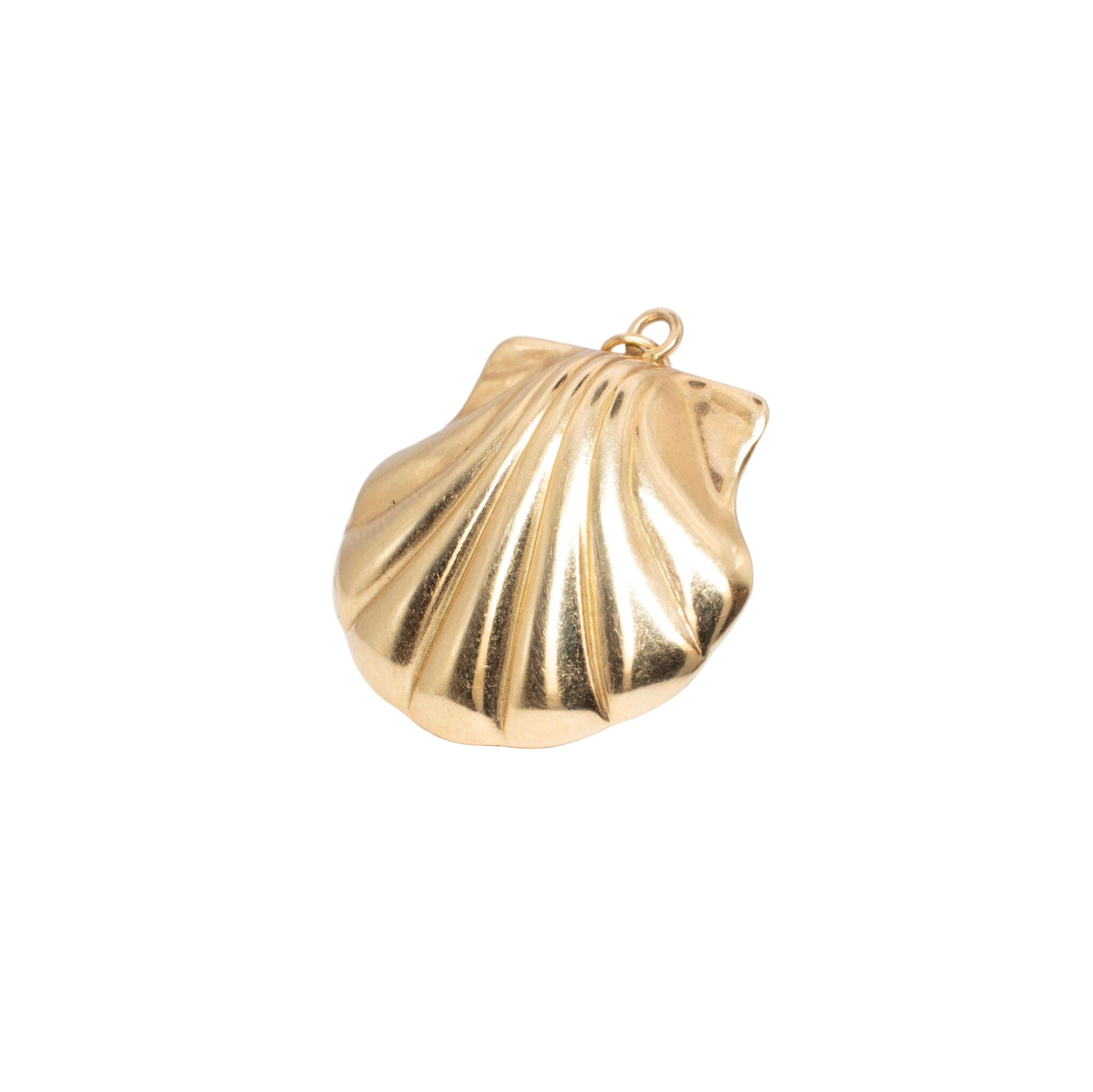 A beautifully crafted hollow vintage charm in 14K yellow gold, shaped as a large, detailed 3D shell. Its textured design captures the natural elegance of the seashell, making it a graceful and timeless addition to any charm bracelet or necklace.