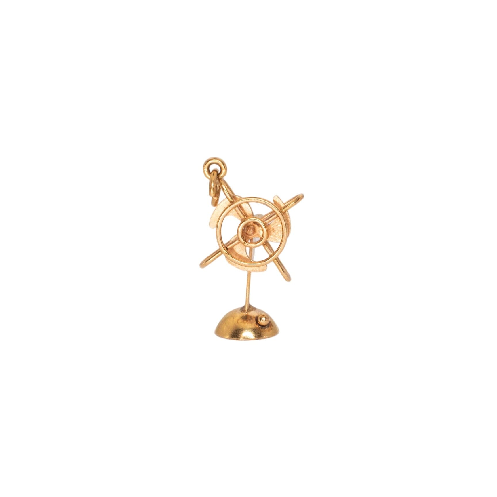 A finely crafted vintage charm in rich 18K yellow gold, shaped as a detailed stand-up fan. Elegant and distinctive, this charm captures the artistry and charm of vintage design, making it a lovely addition to any bracelet or chain.