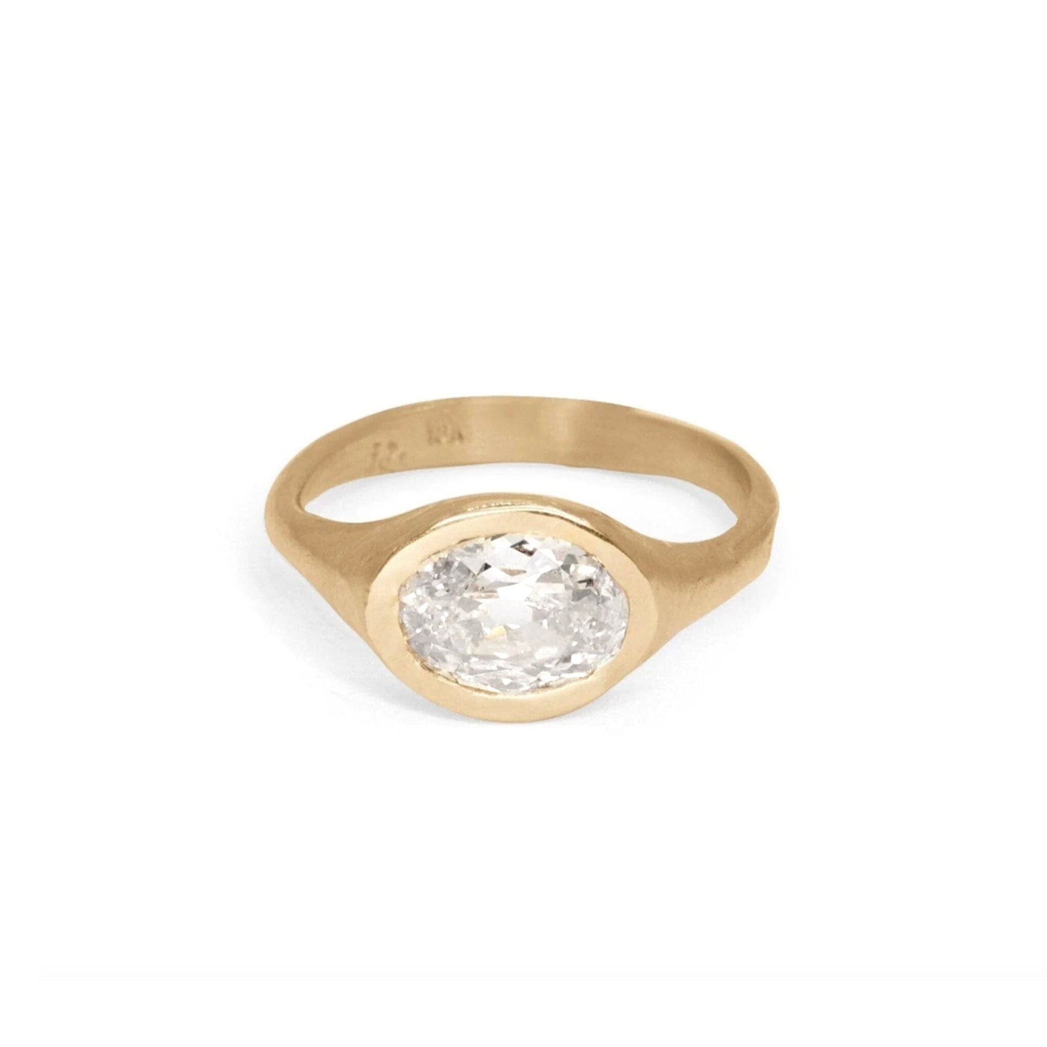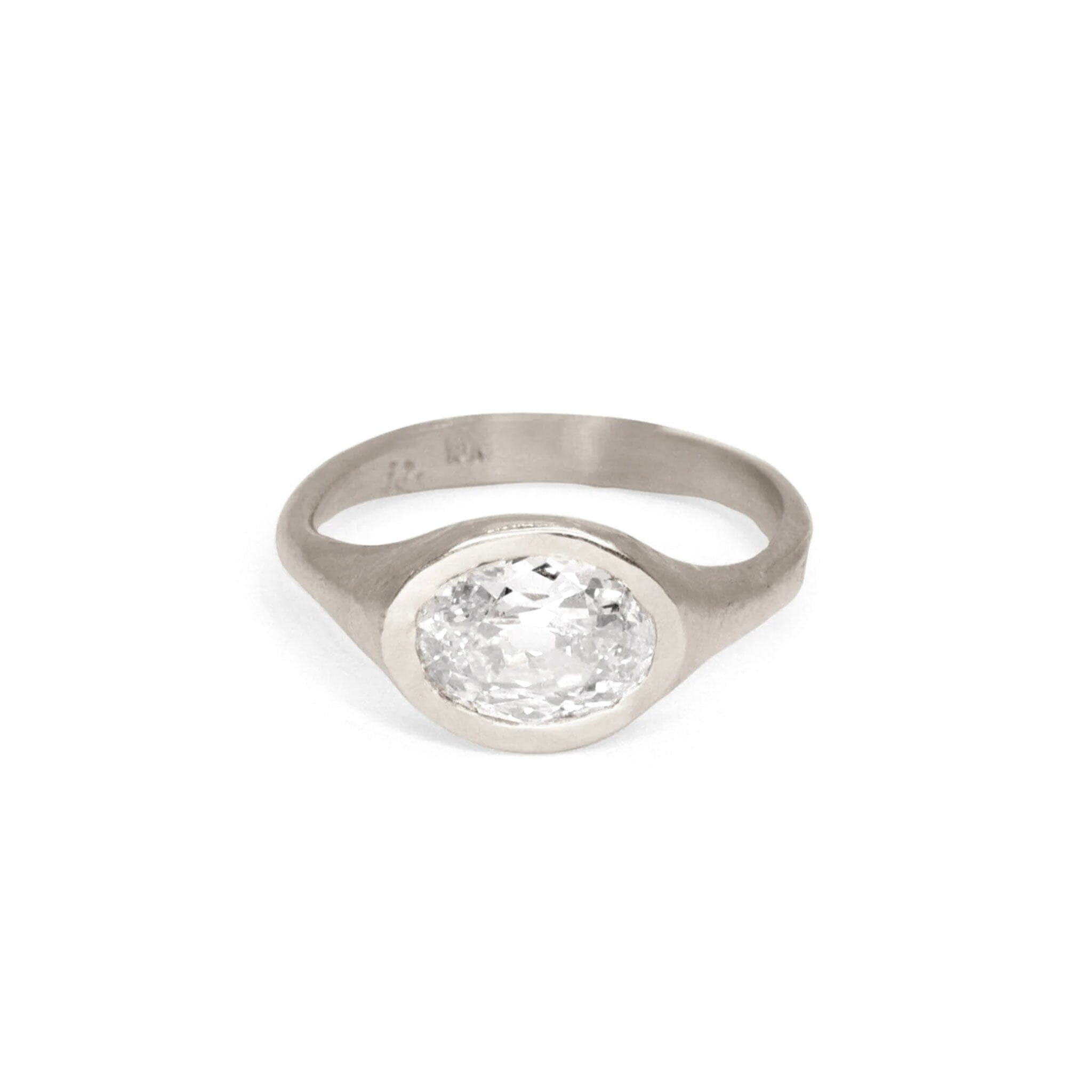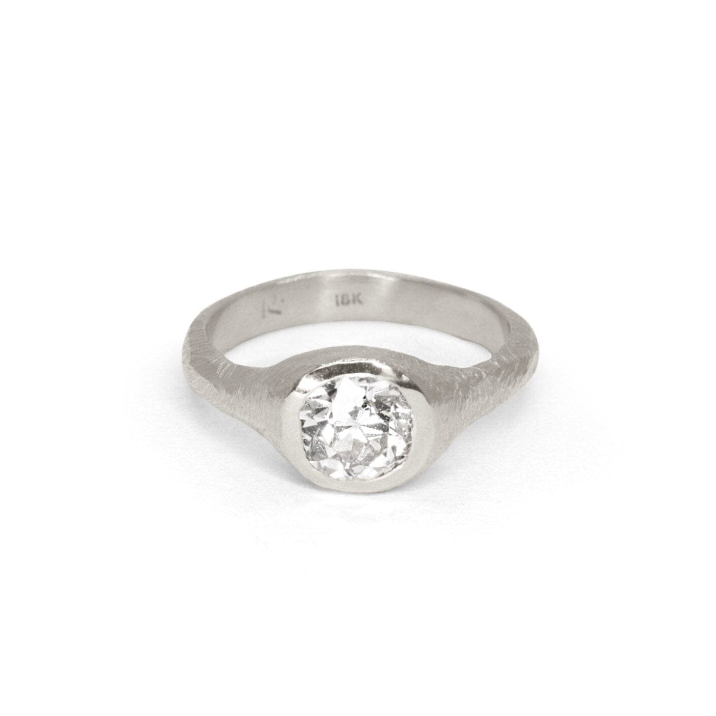 Our Carved Signet Engagement ring style is one of our favorite pieces to make. Each one of a kind ring is carved by Page to fit the stone of your choice. This sculptural one of a kind engagement ring is finished with our textured finish or smoothed out for a softer organic look.